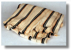 | This Nigerian cotton cloth has narrow stripes of indigo and brown on a cream ground. |