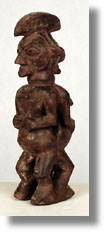 | These wood standing janiform figures, male and female, are from the Yaka of Zaire. |
