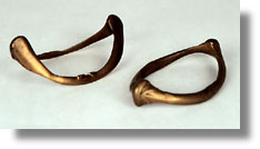 | This pair of brass armbands of rocker form is from the Senufo of the Ivory Coast. |