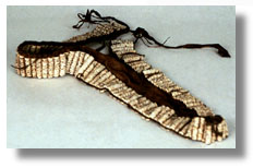 | This hide skirt isdecorated with ostrich eggshell beads. |