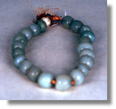 Description: These large dichroic glass Òmoon beadsÓ are possibly 18th-century Venetian. Significance researched to date: