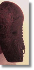 Description: This wood face mask has a notched nose and pigments. Significance researched to date: