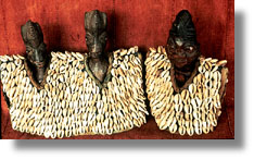 Significance researched to date: The twin birth rate among the Yoruba is proportionately high compared to other geographic regions. Because twins double the financial burden, twins born in poor families were formerly put to death. The ruling families, however, instituted a twin cult under instructions from an oracle, which said that the killing of twins was offending Shango, the god of thunder. Mothers of twins had to dance to Ibeji, the spirit of twins, every five days. Offerings of food are thought to placate the spiritÕs temperament. Upon the death of a twin, the mother commissions an ere figure. If both twins die, two ere figures are carved. If the ere figure is not provided, the Yoruba believe that the soul of the deceased will seek vengeance by bringing terrible misfortune to the other twin or to the entire family. Ere figures are carved as the same sex as the deceased twin, but as an adult, with breasts and genitals indicating strength. Often the family Ila scarification marks are included. Indigo dye and ground camwood are rubbed on to beautify and protect the figures from harm. Beads associated with the orisa worshipped are selected. Cowrie shells or brass rings, cloths, finely detailed coiffures or hats are also carefully chosen. The ere ibeji are placed on the household altar. There they are fed and clothed just as the surviving twin is fed and clothed to placate Shango. Ere ibeji figures are dedicated to Shango, by the application of campowder. Shango is also known as Oko Ibeji, Òthe husband of twins.Ó The twinsÕ connection to Shango can also be seen in the clothing provided for the figures. Often tiny capes of cowrie shells are made for the figures. These capes, called Ewu Shango, are miniatures of the ones worn by priests during the Shango ritual. The cowrie shell symbolizes Shango in that he is the god of material wealth and the cowrie shell is an ancient form of money. With the death of the mother, Ifa is consulted. Ifa summons the spirit of Ibeji, who determines what should happen to the ere ibeji. Sometimes the figure is buried with the mother. Other times, the figure is passed to another family member to be cared for. (Drewal, 170-5; Perani, 147-8; Ulrich, 2; Gillon, 244)