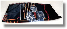 | This Kitenge cloth from Zaire has three images of Nelson Mandela in various color. It was produced to honor MandelaĆs visit to Kinshasa. |