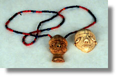 | These two head pendants, one strung with beads, are of ivory. |