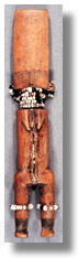 Click on the image to view a high resolution image. To return to thumbnails, use your computer's "back" button. Type: figure Ethnic Group: Fanti Country: Ghana ECU Number: W0189 Description: This Fanti akuaĆba fertility figure, standing with carved legs and beads, has a vertical crack on the torso. Significance researched to date:
