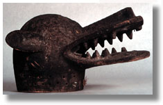 Click on the image to view a high resolution image. To return to thumbnails, use your computer's "back" button. Type: mask Ethnic Group: Chamba Country: Nigeria ECU Number: W0045 Description: This mask, Chamba Senufo, Korubla, has heavy over-all encrustation, metal disk eyes, and blackened pigmentation. [Nigeria/Ivory Coast?] Significance researched to date: