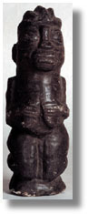Click on the image to view a high resolution image. To return to thumbnails, use your computer's "back" button. Type: figure Ethnic Group: Yoruba Country: Nigeria ECU Number: W0068 Description: This blackened stone Yoruba female figure, used in the Eshu Cult, has traditional characteristics, hands on breasts. It is a rare example. Significance researched to date: