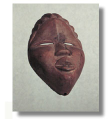 | This Guere miniature passport mask has high cheekbones. With stand. [Ivory Coast/Liberia.] |