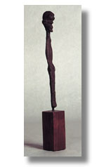 | This Dogon fetish is made of terracotta over a crude iron bar. With wooden base. Restored. |