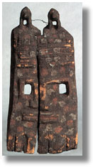 | This Dogon flat face mask is carved in two sections and attached. It is an old and often used piece in low relief with some residual pigment. |