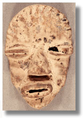 | This Dan NÕGuere portrait mask [Lilberia /Ivory Coast] has over-all kaolin (?) encrustation. |