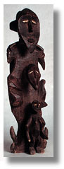 | This Fang Bwami Society, Lega, shrine figure has a female figure on one side with additional projecting heads representing animals and birds. The other side has a single large projecting head surmounted by birds and animal heads. [Gabon/Zaire] |