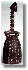 | This Senufo, Deguele male form headdress/helmet mask has kaolin spotted offerings and a wear patina. |