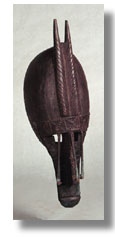 | This Marka mask represents NÕTomo-- a spirit effective against evil. It has a hammered copper overlay and a use patina. With base. |